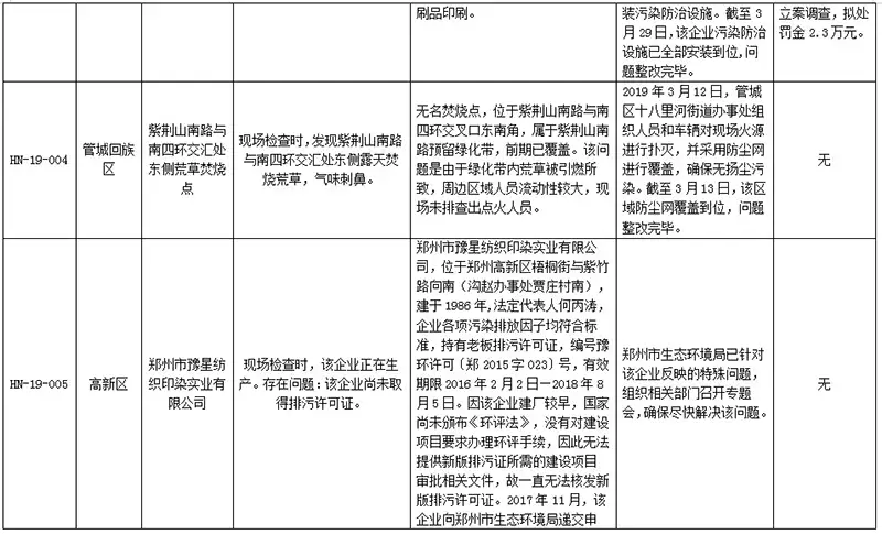 4月15日,生态环境部通报3月4日至3月17日蓝天保卫战重点区域强化督查涉及郑州市的21个问题(环督函〔2019〕32号),目前已全部按要求完成整改,共依法立案8起,处罚或拟处罚金55.8万元,追责1人,取缔黑加油点(车)1处。被督办的21个问题:金水区5个,新郑市4个,高新区2个,惠济区2个,管城区2个,登封市1个,巩义市1个,经开区1个,新密市1个,郑东新区1个,中牟县1个。朴华科技整理如下: