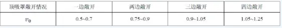 1)其中,V为罩口平均风速,m/s。可取0.5~1.25,应根据控制点风速调节,一般按照如下来选取数值;