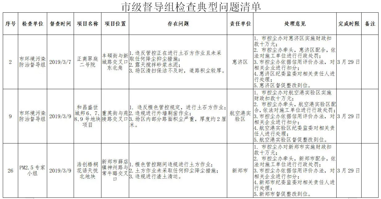 郑州市重污染天气督查典型问题通报(3月7日—3月11日)