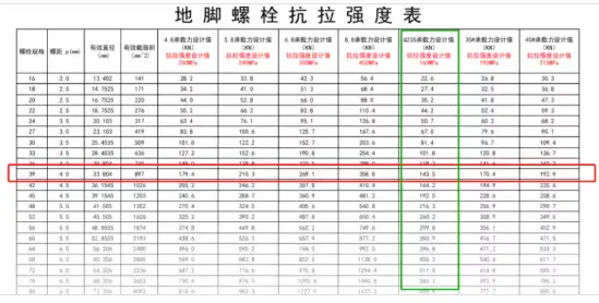 计算完毕后,对照地脚螺栓抗压强度表对比是否符合。